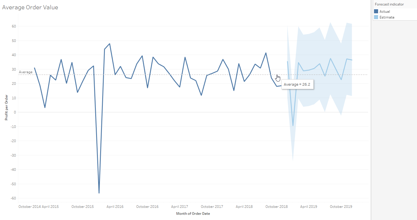We want to know now what is the average profit of an order. This metric will help us to understand the importance of an order at a specific period. Also will help us to give a quantitive value to each order.